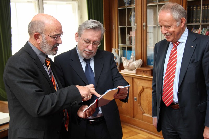 Auf Einladung des Unternehmers und Vize-Präsidenten der Industrie- und Handelskammer, Gerhard Pfeifer, war mit Dr. Johannes Grotzky der Hörfunkdirektor des Bayerischen Rundfunks in Memmingen zu Besuch. In Vertretung von Oberbürgermeister Dr. Ivo Holzinger empfing Bürgermeister Helmut Börner den Gast im Rathaus. Dr. Grotzky trug sich in das Goldene Buch der Stadt Memmingen ein.