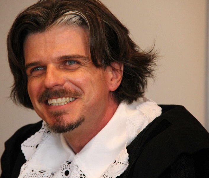 „Albrecht Wenzel Eusebius von Wallenstein, Herzog von Friedland und Mecklenburg, Generalissimus und Admiral der baltischen und ozeanischen Meere“, stellte sich Dr. Klaus Hörmann den Medienvertreter vor. Ihm sei es wichtig seine Rolle „emotional einnehmen zu können“. Deswegen sei er auch an der Wallensteinbiografie von Golo Mann nicht vorbeigekommen. Der verheiratete Familienvater von zwei Kindern bezeichnete seinen historischen Vorgänger als einen „gewieften Ökonom und Strategen“. Hörmann dankte seinen Vorspielern bei den vergangenen Wallensteinfestspielen: „Die Messlatte für eines der größten Historienspiele in Europa ist gesetzt. Ich werde versuchen, die Erwartungen zu erfüllen, aber auch eigene Spuren zu hinterlassen“.