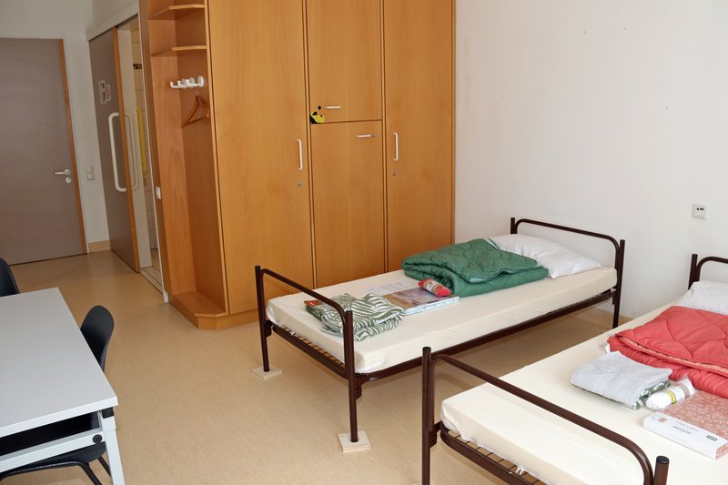 Rund 80 Personen können in der Unterkunft beherbergt werden. Die Geflüchteten wohnen in Zweibett- oder Familien auch in Vierbettzimmern. Alle Zimmer sind mit einem eigenen Bad ausgestattet. Die Küche wird gemeinschaftlich genutzt.