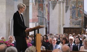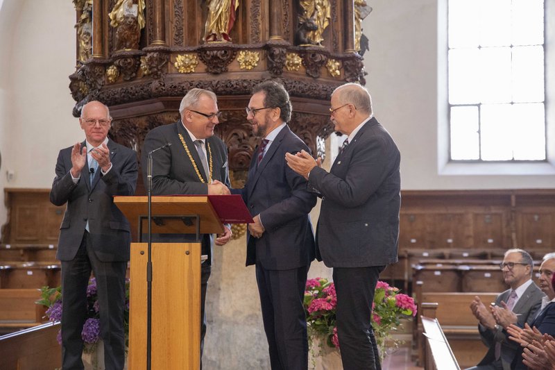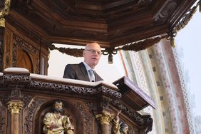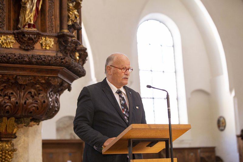 Dekan Christoph Schieder führte in seinem Grußwort in das Jahr 1525 zurück, als bereits die Bauerkriege ihren Anfang genommen hatten. In Memmingen jedoch sei die Situation anders gewesen. „Damals greifen die schwäbischen Bauernhaufen nicht zur Waffe, sondern sie ergreifen das Wort. Nicht das scharfe Schwert, sondern die spitze Feder soll ihren Forderungen Ausdruck verleihen. Die Bauern setzen auf die Macht des Wortes“, betonte Schieder. „Damit solche schöpferischen, machtvollen Worte durch unsere Welt gehen, braucht es Menschen, die mutig und geistreich nach ihnen suchen, die mit ihnen besonnen provozieren, die anregen.“ Menschen wie Preisträger Heribert Prantl.