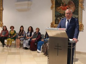 Umrahmt wurde die Feier vom internationalen Frauenchor „Silk Road“ unter der Leitung von Otfried Richter mit Liedern auf Türkisch und Farsi sowie zum Abschluss der deutschen Nationalhymne.