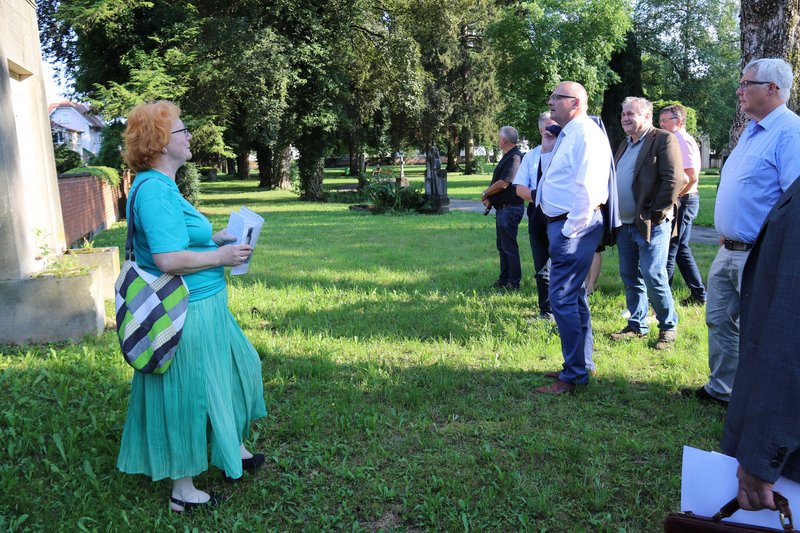 Oberbürgermeister Manfred Schilder und Mitglieder des Stadtrats und der Verwaltung waren bei einem Ortstermin im Alten Friedhof. Dort bekamen sie eine Führung von Dr. Christa Koepff, Claudia Berg und Josef Neudegger. Die Mitglieder des Fördervereins, die den Besuch angeregt hatten, erzählten anschaulich und unterhaltsam über die sich wandelnde Bestattungskultur in der Stadt sowie Geschichten rund um die Grabstätten alter Memminger Familien. Anhand der verschiedenen Stationen wurde Stadtgeschichte lebendig. Auch die weitere Nutzung des Ortes als Platz der Besinnung und Begegnung wurde angesprochen.