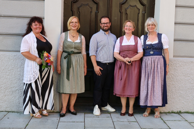 Die Medaillen wurden in diesem Jahr an Andrea Karasch und Ulrike Osterrieder übergeben. Die beiden wachen im Liedausschuss über die Musikstücke, die die Kinder auf dem Marktplatz gemeinsam singen. Andrea Karasch ist als Lehrkraft in der Reichshainschule bereits seit 18 Jahren beim Fest und den Vorbereitungen engagiert. Ulrike Osterrieder, die seit 1990 an der Theodor-Heuss-Schule tätig ist, tut dies bereits seit ihrem Wechsel an diese Schule und ist darüber hinaus seit fünf Jahren die Kinderfestbeauftragte dort. Dagmar Trieb betonte: „Obwohl die beiden nicht in Memmingen geboren wurden, sind sie seit vielen Jahrzehnten mit dem Kinderfestfieber infiziert und mit Herzblut dabei.“