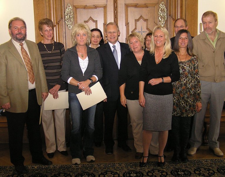 Acht 25-jährige und zwei 40-jährige Dienstjubiläre zeichnete Oberbürgermeister Dr. Ivo Holzinger in einer Feststunde aus. „Ich danke Ihnen ganz herzlich und darf Ihnen weiterhin alles Gute wünschen“, so Dr. Holzinger in seiner Laudatio. Und weiter:„Sie alle sind tragende Pfeiler der Stadtverwaltung und der städtischen Betriebe, wie immer sie organisiert sind“. 40-jähriges Dienstjubiläum feierten Peter Barton (Klinikum) und Heinz Baierl (Amt für Informations- und Kommunikationstechnik). Seit 25 Jahren im öffentlichen Dienst sind Renate Bonnemann (Straßenverkehrsamt), Georg Daufratshofer (Sing- und Musikschule), Christine Plass (Kindergarten Westermannstraße) sowie Felizitas Handrick, Dr. Angelika Kofler, Gerlinde Mang, Ulrike Wassermann, Andrea Zeidler (alle Klinikum).