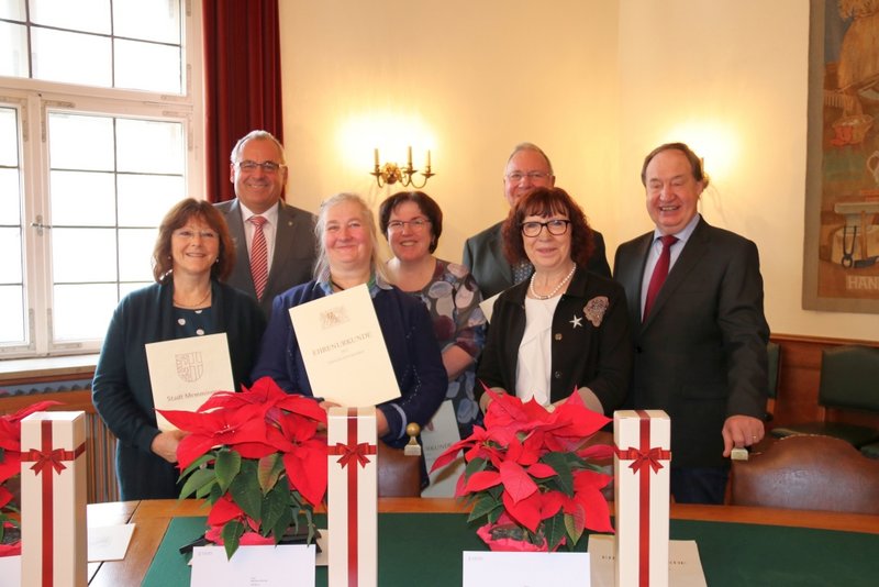 In der Kinderklinik sind Cornelia Geis und Bettina Hiemer-Ullmann als Kinderkrankenschwestern tätig. Während Sonja Zoller bereits seit 1999 als Krankenschwester auf der Intensivstation arbeitet. Ebenfalls 25 Jahre im Klinikum ist Heidrun Ritter, sie ist dort bereits seit 15 Jahren leitende Medizinisch-technische Radiologieassistentin, während Martina Schmitz im zentralen Studienbüro arbeitet. Oberbürgermeister Schilder dankte ihnen für ihre wertvolle Arbeit und die lange Treue zur Stadt.