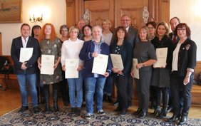 Neun Beschäftigten durfte Manfred Schilder eine Urkunde für die 25-jährige Tätigkeit im öffentlichen Dienst überreichen. Darunter Stefan Fuhrmann, der seit 2006 im Personalrat ist, seit fünf Jahren sogar als dessen Vorsitzender agiert und somit vielen Anwesenden bestens bekannt ist. Auch Alexandra Hartge, die in Memmingen als Verwaltungsrätin unter anderem für Europaangelegenheiten und das Stadtmarketing zuständig ist, kennen viele. Als Beauftragte der Städtepartnerschaften sei sie sogar in Teramo, Auch und Tschernihiw genauso bekannt wie hier, scherzte Schilder.