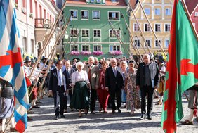 Mit einem Ehrenspalier hießen Pikeniere den Jubilar mit Ehefrau Elisabeth Miller und den Festgästen vor dem Rathaus willkommen. Josef Miller ist Ehrenmitglied der Wallensteingruppe der Pikeniere. Oberbürgermeister Manfred Schilder ließ in seiner Begrüßung wichtige Etappen im Leben des Memminger Ehrenbürgers Revue passieren. Josef Miller stammt aus einer Landwirtschaft in Oberschöneberg. Er absolvierte eine landwirtschaftliche Lehre, machte das Abitur auf dem zweiten Bildungsweg und studierte Agrarwissenschaften. 1979 wurde er als Redenschreiber für Staatsminister Dr. Hans Eisenmann an das Bayerische Landwirtschaftsministerium geholt. 1985 wurde ihm die Landtagskandidatur für den Stimmkreis Memmingen angetragen. Wie Josef Miller selbst erzählt hatte, war sein bis dahin höchstes öffentliches Amt die Mitgliedschaft im Bürgerausschuss Amendingen gewesen. 1986 wurde er für den Stimmkreis Memmingen in den Landtag gewählt und blieb 27 Jahre Abgeordneter. 1990 wurde er Staatssekretär und blieb es für drei Jahre. 1994 wurde er stv. Vorsitzender der CSU-Landtagsfraktion. 1998 berief ihn schließlich Ministerpräsident Stoiber als Staatsminister für Landwirtschaft, Ernährung und Forsten in sein Kabinett. Josef Miller füllte das Amt zehn Jahre lang aus und bewältigte manche Krise. 18 Jahre gehörte er dem Memminger Stadtrat an, 23 Jahre war er Kreisvorsitzender des Memminger CSU-Kreisverbands.