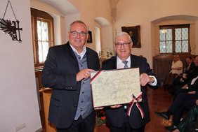 Zum 75. Geburtstag von Staatsminister a.D. Josef Miller würdigten politische Weggefährten bei einem Empfang im Rathaus die Lebensleistung des Memminger Ehrenbürgers. Ministerpräsident a.D. Dr. Edmund Stoiber beschrieb Josef Miller, der zehn Jahre lang (1998-2008) als Landwirtschaftsminister seinem Kabinett angehörte, als einen Politiker, der in der politischen Auseinandersetzung sein Ziel klar verfolgt habe, aber dabei auch immer einen Ausgleich angestrebt habe. Josef Miller stehe für hohe Kompetenz, Glaubwürdigkeit und Loyalität. „Du hast Konflikte immer so gelöst, dass die Leute in den Politiker und Menschen Josef Miller Vertrauen hatten. Das ist nicht jedem gegeben. Damit hast du auch ein Stück Stabilität in unsere Republik gebracht“, betonte Ministerpräsident a.D. Stoiber. „Du warst einer der Allerbesten in der Riege der Kabinettsmitglieder in meiner 14 ½ jährigen Regierungszeit als Ministerpräsident.“