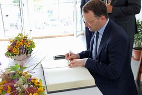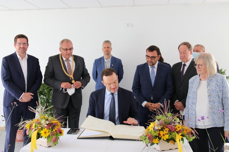 Bundesgesundheitsminister Jens Spahn besuchte Memmingen am Sonntag, 19. September, zu einem gesundheitspolitischen Gedankenaustausch im Vorfeld der Bundestagswahl. Vor der Veranstaltung trug er sich auf Einladung von Oberbürgermeister Manfred Schilder im Kaminwerk ins Goldene Buch der Stadt ein. Der Bundesgesundheitsminister hatte in Memmingen übernachtet und den Sonntagmorgen für einen Spaziergang in der Innenstadt genutzt. „Memmingen ist eine sehr schöne Stadt“, bekräftigte Jens Spahn.