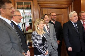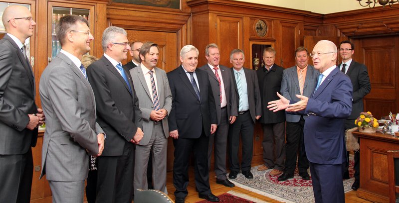 "Es ist wunderschön, mit so viel Herzlichkeit im Rathaus empfangen zu werden", betonte der zukünftige Vorstandsvorsitzende der Bank, Peter Noppinger. "An ihrer Lebhaftigkeit merkt man, wie viel Liebe sie in dieses Amt stecken", sagte er dem OB zugewandt. "Es bereitet uns allen große Freude, in einer so geschichtsträchtigen Stadt zu weilen."