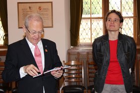 Traditionell lud Oberbürgermeister Dr. Ivo Holzinger die Teilnehmerinnen und Teilnehmer der Mai-Kundgebung der Gewerkschaften zu einem Stehempfang in das Rathaus ein. Er dankte den Gewerkschaften und den Betriebs- und Personalräten für ihre Arbeit. Der Hauptrednerin der Mai-Kundgebung, Claudia Weixler von der Gewerkschaft für Nahrung, Genuss und Gaststätten Allgäu, überreichte er einen Bildband der Stadt Memmingen.