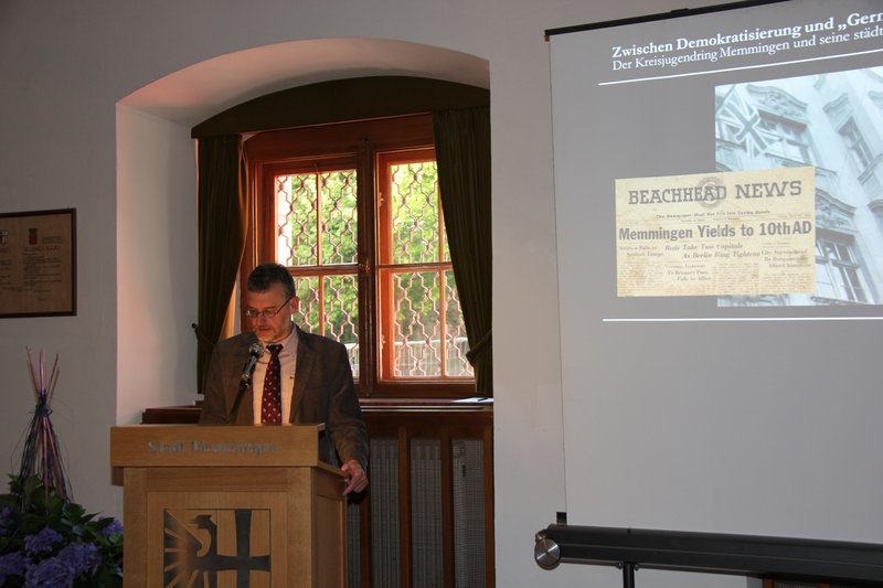 Stadtarchivar Christoph Engelhard erinnerte in seinem Vortrag zur Gründung des Kreis- und Stadtjugendrings Memmingen an die Anfänge in der frühen Nachkriegszeit. Anhand von Quellen wie Sitzungsprotokollen, Briefen und Zeitungsartikeln zeigte Engelhard auf, dass die Gründung des KJR am 20. Mai 1946 in Memmingen mit den "German Youth Activities" der US-Militärregierung in Zusammenhang stand. Ziel sei die "Demokratisierung der Jugend" nach den Jahren von Diktatur und Krieg gewesen, erläuterte er. Als die Stadt Memmingen am 1. April 1948 ihre Kreisfreiheit wiedererlangte, habe man die Trennung des Kreisjugendringes erwogen, diese mit Hinweisen auf die engen Verbindungen zwischen Stadt und Land sowie auf entstehende Doppelkosten jedoch abgelehnt. Erst im März 1963 wurde mit der Gründung des Stadtjugendrings die organisatorische Trennung beschlossen.