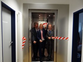 Zahlreiche geladene Gäste waren jetzt bei der Eröffnung des neuen Bildungszentrums der Volkshochschule (vhs) in der Machnigstraße 4 im Memminger Westen anwesend, als Oberbürgermeister Dr. Holzinger zusammen mit Vorstand Hans-Peter Fischer von der Memminger Wohnungsbaugenossenschaft MeWo und vhs-Leiter Michael Trieb den nachträglich eingebauten Aufzug einweihte.