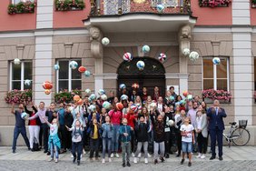 Oberbürgermeister Manfred Schilder empfing die schulbesten Sportlerinnen und Sportler der Memminger Schulen bei den Bundesjugendspielen im Rathaus. Er gratulierte den Mädchen und Buben zu ihren hervorragenden Leistungen und ihrem vorbildlichen Sportsgeist und überreichte ihnen als Auszeichnung neue Sportbälle.