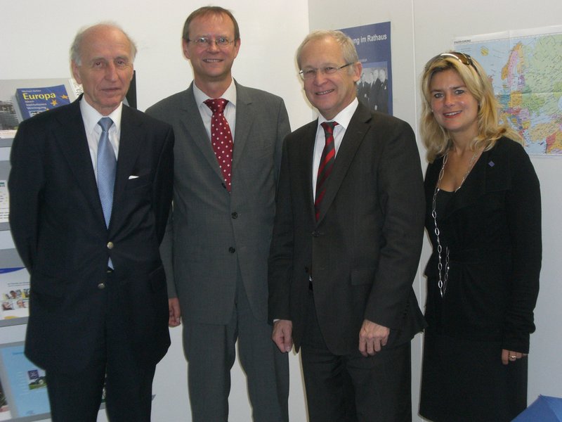 Dr. Arp zeigte sich von den zwischenzeitlich angestoßenen Projekten des Europabüros sichtlich angetan. Die Europäische Kommission möchte die vor Ort geleistete Arbeit gerne weiterhin unterstützen. Aus diesem Grund bot er dem Oberbürgermeister an, das Europabüro Memmingen als einen von vier „assoziierten Partnern“ in Deutschland in das Europe Direct Netzwerk aufzunehmen. Dies bedeutet, daß das Europabüro Memmingen über einen Zugriff auf sämtliches Informationsmaterial der Europäischen Kommission verfügt sowie als Netzwerkpartner an dem umfangeichen Weiterbildungsprogramm der Kommission teilnehmen kann. Einen weiteren assoziierten Partner stellt bislang das Regierungspräsidium Gießen dar.
