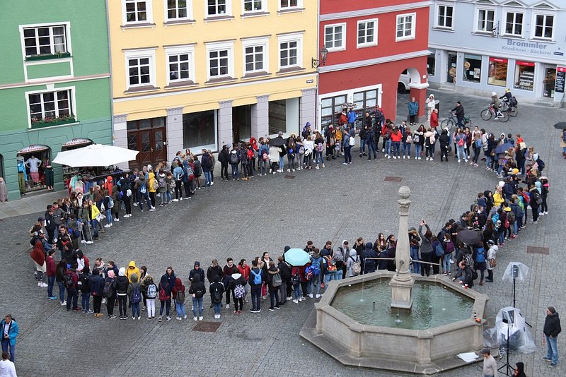 Rund ging es sprichwörtlich auch am Nachmittag: Beim Programm mit vielen unterschiedlichen Spielen und Aktionen auf dem Marktplatz, waren auch einige Punkte mit Musik untermalt. Das gefiel den Schülerinnen und Schülern so gut, dass sie zum Abschluss dieses Programmpunkts noch einmal zu „Mambo Nr. 5“ und „Makarena“ ihr „Speeddating“ veranstalteten und spontan tanzten. Auch hier waren die Rückmeldungen der Jugendlichen sowie der Vorübergehenden überwältigend positiv.