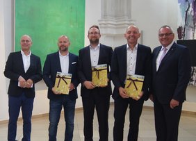 Das Stadtoberhaupt dankte allen am Festival beteiligten Institutionen und Ämtern, insbesondere dem Meile-Team um Kulturamtsleiter Dr. Hans-Wolfgang Bayer. Ein großes Dankeschön galt auch den drei Hauptsponsoren der "Memminger Meile". Als Präsent überreichte er René Schinke von der VR-Bank Memmingen, Josef Wagner von der Lechwerke AG sowie Marcus Rietzler vom Autohaus Seitz den druckfrischen Katalog zur Ausstellung.