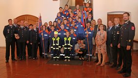 Oberbürgermeister Manfred Schilder begrüßt die Jugendfeuerwehr Helfta/Eisleben jetzt im Rathaus.
