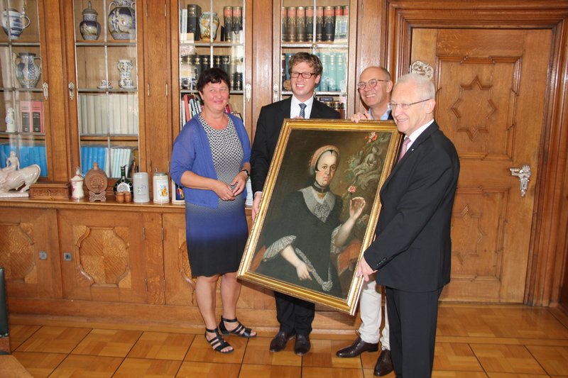 Durch eine Schenkung der gemeinnützigen Günther Fielmann Stiftung gelangt ein wertvolles Porträtbild der Memminger Bürgerin Anna Katharina Bilgram (1747 – 1794), geschaffen von Franz Xaver Stähle (1752/53 – 1817), in den Bestand des Stadtmuseums Memmingen. Zur feierlichen Übergabe begrüßte Oberbürgermeister Dr. Ivo Holzinger den Kunsthistoriker Jürgen Ostwald als Vertreter der Stiftung im Rathaus.
