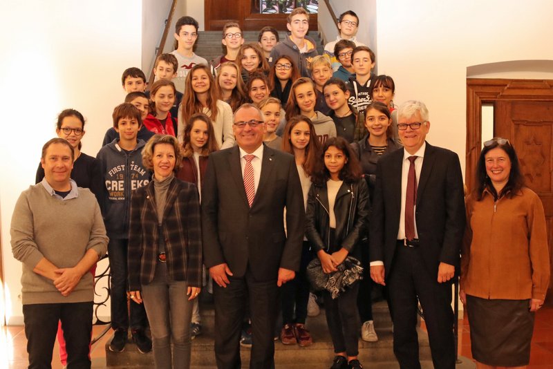 Arnold dankte dem Oberbürgermeister für den herzlichen Empfang im Rathaus und für die Unterstützung durch das Europabüro der Stadt. Sein Dank galt auch den engagierten Lehrkräften und Gastfamilien, ohne die ein solcher Austausch nicht möglich wäre. "Die Zukunft Europas liegt in den Händen der Jugend", stellte Arnold fest. Es sei kein Zufall, dass der französische Präsident Emmanuel Macron seine Grundsatzrede zu Europa vor jungen Menschen an der Pariser Universität Sorbonne gehalten habe. Der Schüleraustausch sei ein wichtiger Baustein der freundschaftlichen Beziehungen zwischen Deutschland und Frankreich, die mit dem Elysée-Vertrag 1963 vom damaligen Bundeskanzler Konrad Adenauer und dem französischen Präsidenten Charles de Gaulle besiegelt wurden.