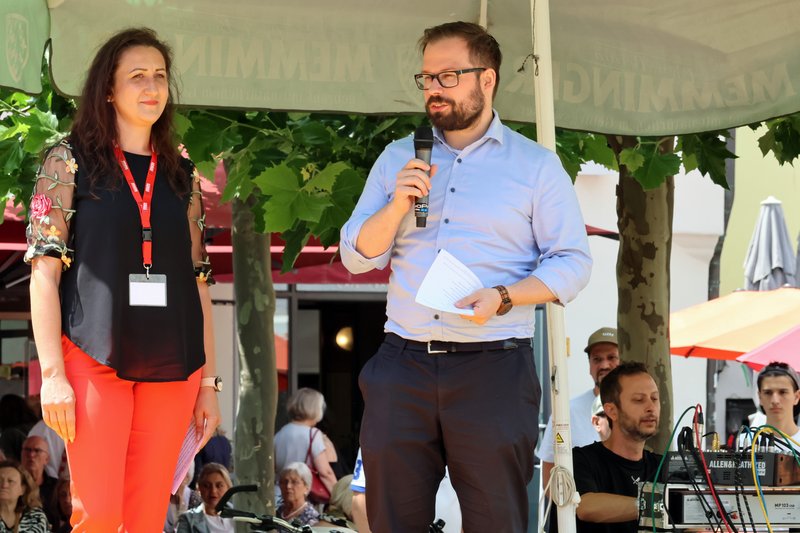 Mediterranes Flair auf dem Weinmarkt: Bei Sommersonne und angenehmen Temperaturen strömten hunderte Besucherinnen und Besucher zum Fest der Kulturen, das im Rahmen der Memminger Meile vom Integrationsbeirat der Stadt Memmingen organisiert worden ist. „Wir feiern die Vielfalt der Nationen und Kulturen, die in Memmingen zu Hause sind“, begrüßte Oberbürgermeister Jan Rothenbacher die Gäste gemeinsam mit Patricia Isac, der Vorsitzenden des Integrationsbeirats, zum fröhlichen Fest mitten in der Innenstadt.