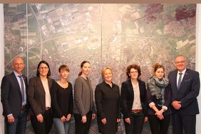 Beim Pressetermin stellten sich auch die mit den beiden Projekten betrauten Planer vor. Sylvia Haines von Haines-Leger Architekten Stadtplaner BDA für die städtebauliche Planung, Claudia Zimmermann von der brenner BERNARD ingenieure GmbH für die Verkehrsplanung, Diana Thrum von der arc.grün | landschaftsarchitekten. Stadtplaner. GmbH für die Konzeptplanung der Grün- und Freiflächen und Katrin Höpfner von der licht|raum|stadt planung GmbH für das Lichtkonzept.