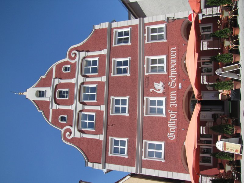 „Die Entstehung dieses bedeutenden Wirtshauses geht auf das 16. Jahrhundert zurück und es gehört somit zu den traditionsreichsten und ältesten Gasthäusern Memmingens. Der hohe Giebel zeigt die Stilelemente der späten Renaissance.