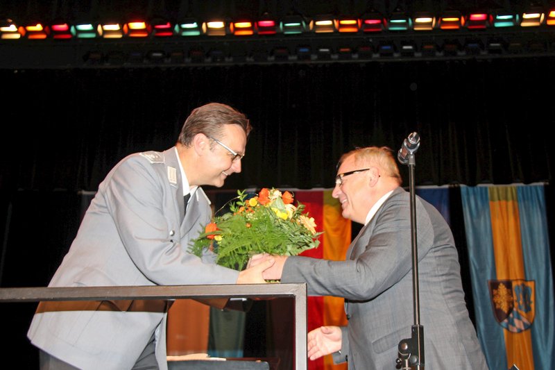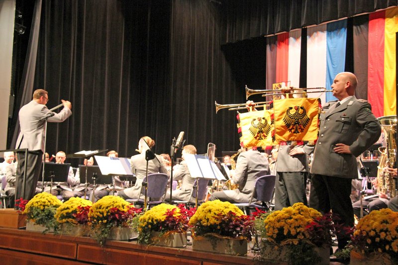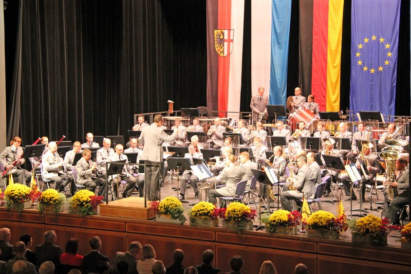 Das Gebirgsmusikkorps der Bundeswehr präsentierte in der Stadthalle vor rund 650 begeisterten Zuhörerinnen und Zuhörern die hohe Kunst der Blasmusik. Der Leiter des Musikkorps, Oberstleutnant Karl Kriner, führte in gewohnt sympathischer Manier durch das abwechslungsreiche Konzertprogramm und erntete für die Darbietungen auf höchstem Niveau vom Publikum viel Applaus.