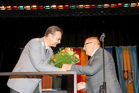Mit dem Konzertmarsch "Euphoria" schlossen die Profimusiker in Uniform den Konzertabend. Oberbürgermeister Manfred Schilder dankte dem Oberstleutnant und seinen Musikerinnen und Musikern für das "wunderbare Konzert" und ergänzte: "Als Fan von Genesis und Phil Collins war dieser Programmpunkt heute mein persönliches Highlight."