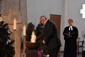 Gut ein Jahr nach dem Beginn der Corona-Pandemie wurde bundesweit in Gedenkfeiern der fast 80.000 Corona-Toten gedacht. Dazu aufgerufen hatte Bundespräsident Frank-Walter Steinmeier. Auch die Stadt Memmingen beteiligte sich an dieser Aktion. Während der Gedenkfeier entzündeten Oberbürgermeister Manfred Schilder, Gesundheitsminister Klaus Holetschek, ärztlicher Koordinator Dr. Jan Henrik Sperling, Klinikvorstand Maximilian Mai, Polizeiinspektionsleiter Joachim Huber und der stellvertretende Bezirksgeschäftsführer des Malteser Hilfsdiensts Bruno Ollech Kerzen in Gedenken an die Corona-Toten.