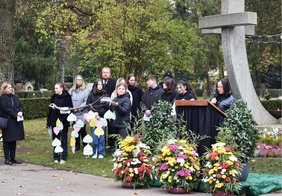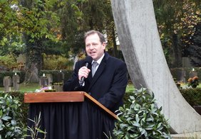 Auf dem jüdischen Friedhof wurde der jüdischen Opfer von Krieg und Gewaltherrschaft gedacht. Efrat Pan, Kulturbeauftragte der Deutsch-Israelischen Gesellschaft, sprach ein hebräisches Gebet und verlas einen Psalm zu Ehren der Toten.