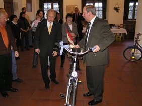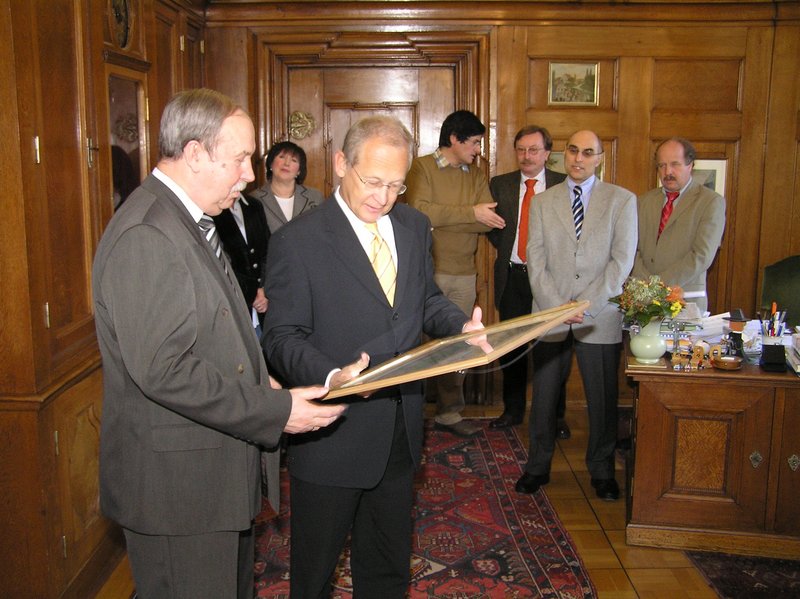 "Jetzt ist's rum ..." mit diesen Worten leitete Oberbürgermeister Dr. Ivo Holzinger in seinem Amtszimmer die Verabschiedung von Gerd Böhler in den verdienten Ruhestand ein. Im Beisein der Bürgermeister Hans Ferk und Josef M. Lang sowie des ehemaligen Bürgermeisters Dr. Georg Volkheimer, der Referats- und Amtsleitung, der Personalvertretung und zahlreicher Kollegen, dankte Holzinger dem Neupensionär, der gleichzeitig seinen 65. Geburtstag feierte, für die langjährige vertrauensvolle Zusammenarbeit. Böhler sei ein Garant für die kurzen Wege in der Verwaltung gewesen. Viele Dinge habe man aufgrund seiner Verlässlichkeit auf Zuruf erledigen können. "Ich werde den guten Draht zu Ihnen vermissen", so der OB an den Scheidenden. Als äußeres Zeichen der Dankbarkeit überreichte Holzinger an den künftigen Pensionär den sogenannten "Schickler-Stich" der eine alte Ansicht der Stadt zeigt und der nur für besondere Verdienste um Memmingen vergeben wird. Böhler dankte seinerseits für das ihm entgegengebrachte Lob hob aber hervor, dass seine Leistungen nur möglich gewesen seien, weil es mit dem OB, den Kollegen und der Presse eine ausgezeichnete Zusammenarbeit gegeben habe. Im Kollegenkreis sprach Hauptamtsleiter Robert Langer später von "Wehmut, die im Kollegenkreis aufgekommen sei". Böhler sei in Notsituationen stets bereit gewesen einzuspringen. Er wünschte dem Scheidenden einen ruhigen und erfüllten Lebensabend im Kreise seiner Familie. Von den Kollegen erhielt Böhler neben einem Stadtbachvehikel ein modernes Fahrrad, damit er künftig die Wege, die er von seiner Frau aufgetragen bekommt, schneller erledigen kann. Böhler stammt aus Pforzheim. Nach einer kaufmännischen Ausbildung bei der Firma Klingel (Pforzheim) trat er am 1. April 1961 seinen Dienst als Verwaltungsangestellter im Bauamt bei der Stadt Memmingen an. 1963 erfolgte seine Versetzung ins Hauptamt. Er legte erfolgreich verschiedene Fachprüfungen an der Bayerischen Verwaltungsschule ab. Sein 40-jähriges Dienstjubiläum feierte er am 1. April 2001. Böhler war lange Jahre Mitglied des Personalrates und im Vergnügungsausschuss aktiv.