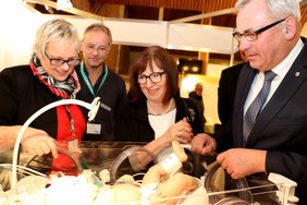 Um einen realistischen Eindruck der täglichen Arbeit auf der Kinderintensivstation des Klinikums zu vermitteln, hatte die Kinderklinik in der Stadthalle einen sogenannten Inkubator aufgebaut, in dem Frühgeborene mit einem Geburtsgewicht von weniger als 400 Gramm versorgt werden, wie die Stationsleiterin Renate Olbrich erklärte.