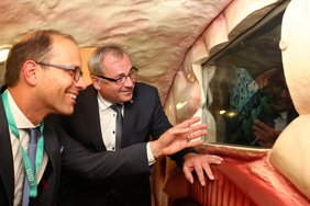 Über moderne Therapieverfahren in der Hirn- und Wirbelsäulenchirurgie referierte der Chefarzt der Klinik für Neurochirurgie, Prof. Dr. Marcel Seiz-Rosenhagen, am Eröffnungsabend. Er verdeutlichte anhand anschaulichen Bildmaterials, wie die Patienten am Klinikum Memmingen hochspezialisiert unter Einsatz bester Technik an Kopf und Wirbelsäule behandelt werden. Um die höchste Ergebnisqualität zu erreichen, sei die Auswahl der optimalen Behandlung in Hinblick auf das Alter des Patienten, die Vorerkrankungen, die Vorgeschichte und die individuellen Erwartungen des Erkrankten entscheidend, so Seiz-Rosenhagen. Anhand eines überdimensionalen Gehirnmodells erklärte der Chefarzt den zahlreichen Besuchern die Strukturen des menschlichen Gehirns.