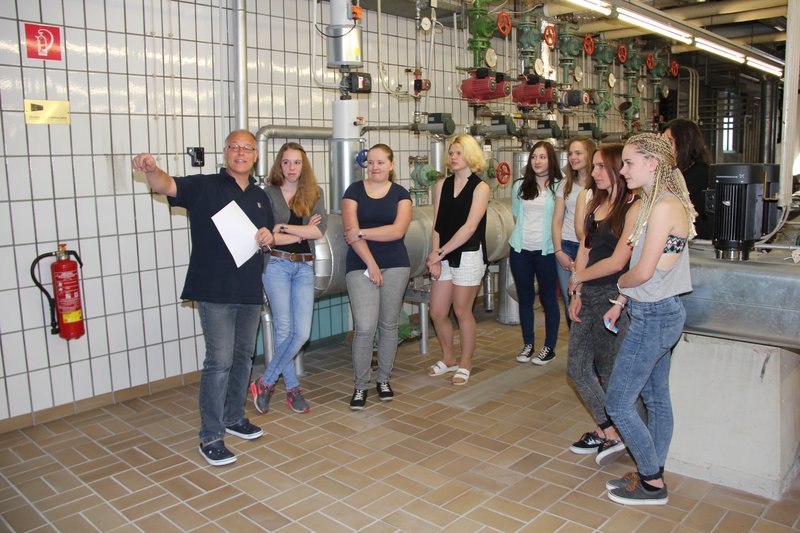 Aufmerksam lauschten auch die Mädchen im städtischen Hallenbad den Ausführungen von Betriebsleiter Peter Weiß. Sie erfuhren, dass neben der Überwachung und Wartung der technischen Anlagen und der Kontrolle der Wasserqualität auch die Betreuung der Badegäste sowie Bürotätigkeiten zum Berufsfeld der Fachangestellten für Bäderbetriebe gehören.