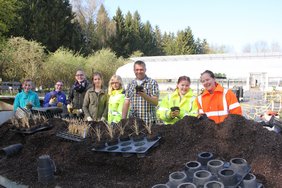 Unter der Anleitung von Thomas Zauzig haben die Mädchen im Laufe des Vormittags auf dem Gelände der Stadtgärtnerei insgesamt rund 3.500 Jungpflanzen getopft. "Das ist eine ganze Menge", sagte Zauzig und deutete auf eine große Fläche voller Blumentöpfe. "Mit den verschiedenen Gräsern, Grünlilien und Fetthennen werden später zum Beispiel die Verkehrsinseln im Stadtgebiet bepflanzt", erklärte er.