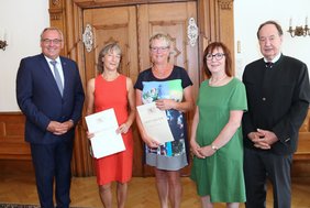 Oberbürgermeister Manfred Schilder überreichte den Jubilarinnen und Jubilaren Urkunden und einen Blumengruß. Herzliche Glückwünsche sprachen auch Bürgermeisterin Margareta Böckh und Bürgermeister Dr. Hans-Martin Steiger aus.