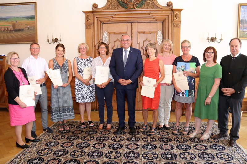 Seit 25 oder sogar seit 40 Jahren arbeiten sie in der Stadtverwaltung oder im Klinikum: Sieben Dienstjubilarinnen und Dienstjubilaren dankte Oberbürgermeister Manfred Schilder für die vielen Arbeitsjahre und ihre Treue zur Stadt Memmingen als Arbeitgeber. „Es ist heute nicht selbstverständlich, dass jemand so lange bei einem Arbeitgeber bleibt. Ihr Dienstjubiläum steht für Ihre Solidarität und Identifikation mit der Stadt“, betonte Schilder und sprach bei einem feierlichen Stehempfang im Rathaus seine Glückwünsche aus.
