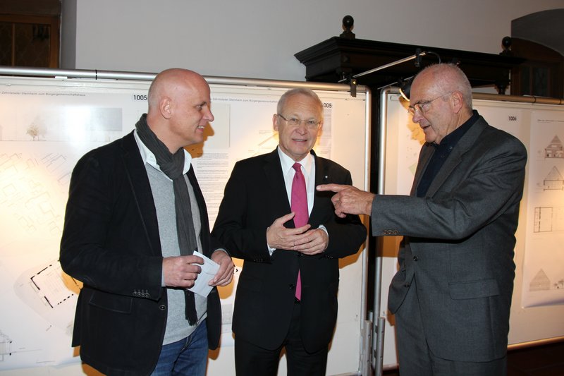 Bei der Ausstellungseröffnung der Arbeiten zum Realisierungswettbewerb "Umbau Zehntstadel Steinheim zum Bürgergemeinschaftshaus" konnte Oberbürgermeister Dr. Ivo Holzinger drei Preise überreichen. Der 1. Preis ist mit 15.500 Euro dotiert und ging an das Greifenberger Architekturbüro "Bembé Dellinger Architekten und Stadtplaner". Der 2. Preis (9.500 Euro) wurde der "H2M Architekten und Stadtplaner GmbH" in Kulmbach verliehen, den 3. Preis (6.000 Euro) erlangte das Nürtinger Büro "weinbrenner.single.arabzadeh".