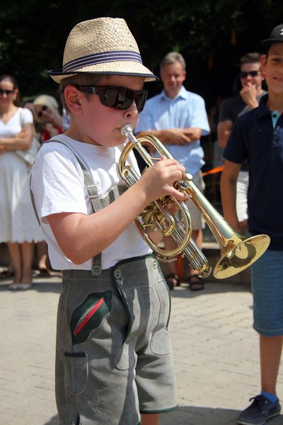 „Wir feiern heute den Garten, alle Groß und Klein“, sangen die Kinder des Fröbel-Kindergartens fröhlich und mit lebhaften Gesten bei der Eröffnung ihrer neu gestalteten Außenanlagen. Mit einem Sommerfest bei heißen Temperaturen wurde der Garten feierlich eröffnet. „Wir danken, dass der Umbau des Gartens vorgezogen worden ist, und wir nicht warten mussten, bis der Neubau des Amtsgerichts abgeschlossen ist“, betonte Kindergartenleiterin Karin Lyra. Der Fröbel-Kindergarten musste für den Neubau des Amtsgerichts eine Ecke seines Gartens abtreten und hat dafür ein Stück aus dem Realschulhof bekommen, das vom Staatlichen Bauamt Kempten kindergartengerecht hergerichtet und mit neuen Spielgeräten ausgestattet wurde.