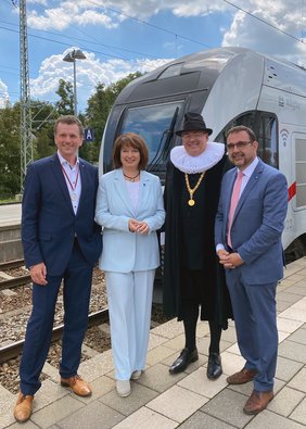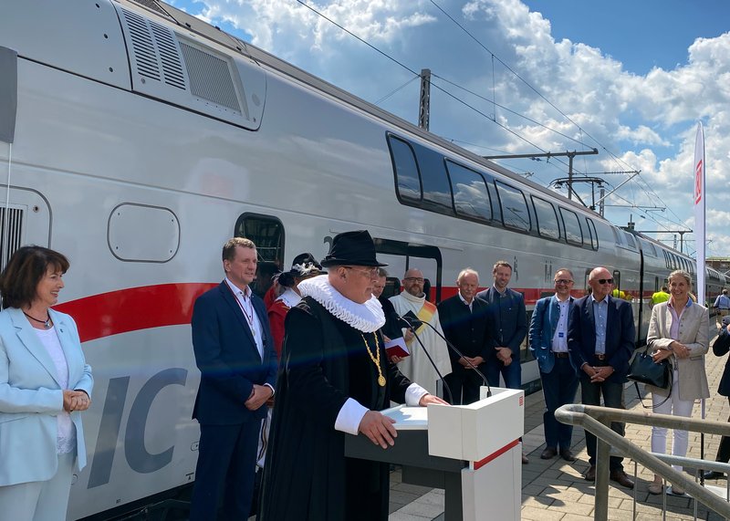 Wohl noch nie wurde ein Zug in einem solchen Rahmen getauft: Ein neuer Intercity 2 wurde von Landrätin Maria Rita Zinnecker, Aufsichtsratsvorsitzende der Allgäu GmbH, Staatsminister für Gesundheit und Pflege, Klaus Holetschek und Manfred Schilder Oberbürgermeister der Stadt Memmingen sowie Klaus Dieter Josel, Konzernbevollmächtigter für den Freistaat Bayern der DB Deutschland, in Memmingen auf den Namen Allgäu getauft. Festlich flankiert von Abordnungen der Wallensteinschen Armee, die zusammen mit über 4.000 Mitwirkenden für eine Woche die Stadt in die Zeit von 1630 zurückversetzen, als Feldherr Wallenstein in der Stadt weilte und Europas Geschicke beeinflusste.
