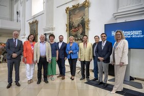 Nach mehrjähriger Renovierung lassen sich im neu gestalteten Heimatmuseum Freudenthal/ Altvater Ereignisse des Zweiten Weltkriegs, die Herkunft und Ankunft der Heimatvertriebenen ab 1945/46 aus dem Sudetenland sowie die Dramatik der Nachkriegszeit erkunden. Das Heimatmuseum, das in den Räumen des Stadtmuseums im Hermansbau beheimatet ist, wurde am Sonntag, 7. Mai 2023, feierlich eröffnet. Als „Heimatstube“ wurde es 1956 auf 27 Quadratmetern eröffnet, rief Oberbürgermeister Jan Rothenbacher in Erinnerung. „Heute können wir das ganz neu konzeptionierte und modern gestaltete „Heimatmuseum Freudenthal/Altvater“ eröffnen, das sich auf rund 200 Quadratmetern in den schönen Räumlichkeiten unseres Stadtmuseums im Hermansbau präsentiert."