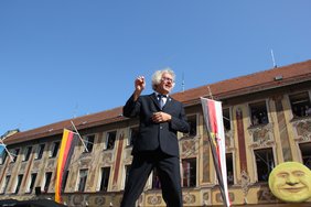 Im Jahr 2001 dirigierte Otfried Richter zum ersten Mal einen Chor aus rund 2000 Grundschulkindern beim Memminger Kinderfest. Mit vollem Einsatz war er seitdem auf der großen Kinderfestbühne am Marktplatz präsent und prägte das Singen der Kinderfestlieder für Generationen Memminger Kinder. „Ich bin mit Leib und Seele in das Kinderfest eingestiegen“, erzählt der langjährige Leiter der städtischen Sing- und Musikschule, der im Herbst in den Ruhestand tritt. Zum Abschied schenkt er dem traditionellen Heimatfest etwas ganz Besonderes: Otfried Richter hat ein neues Kinderfestlied komponiert.