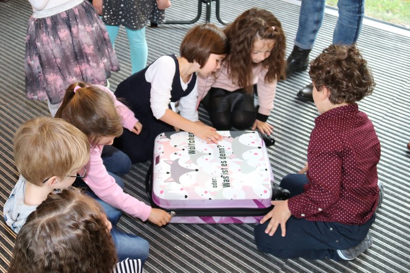 Ein ganz besonderer Bücher-Trolley hat seine Reise durch die Memminger Kindertageseinrichtungen angetreten: Der bunte Rollkoffer mit dem Titel “Wölfchen oder: Was ist es denn?“ wurde von Oberbürgermeister Manfred Schilder und Gleichstellungsbeauftragter Claudia Fuchs den Kindern in der Kindertageseinrichtung Im Mitteresch übergeben. Neugierig packten die Vorschulkinder den Trolley aus und blätterten mit KiTa-Leiterin Brigitte Linder in farbenfrohen, lustigen und spannenden Büchern, die zum Neu-Denken der Geschlechterrollen einladen.
