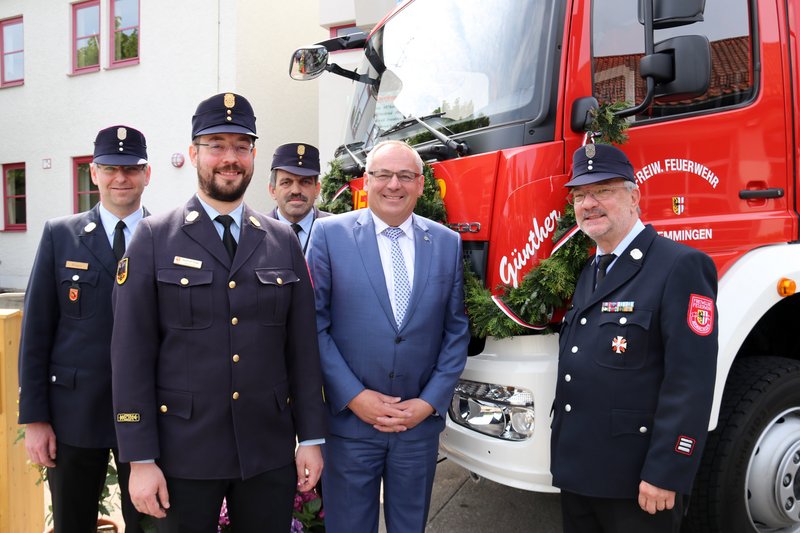 Ein neues Fahrzeug für die Freiwillige Feuerwehr Memmingen wurde von Oberbürgermeister Manfred Schilder bei einem Festakt in der Feuerwache am Rennweg offiziell in Dienst gestellt. Es handelt sich um ein Hilfeleistungslöschfahrzeug „HLF 20“, das für rund 442.000 Euro angeschafft worden ist. „Das ist hervorragend investiertes Geld, denn das Fahrzeug dient dazu, Leben zu retten und auch Sachwerte zu retten“, erklärte OB Schilder. Den Einsatzkräften der Feuerwehr, von Polizei und Rettungsdiensten sprach er seinen Dank aus. „Wir Memminger Bürgerinnen und Bürger können ruhig schlafen, weil wir wissen, dass unsere Sicherheit in guten Händen ist“, betonte Schilder.