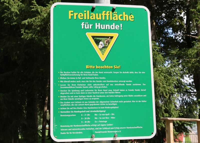Im Memminger Westen wurde eine Hundefreilauffläche eröffnet. Damit ist die Stadt Memmingen dem Wunsch des Hundefreunde Memmingen e. V. nachgekommen, Hundebesitzerinnen und -besitzern eine Möglichkeit eines gesicherten Freilaufs für Hunde in der Stadt anzubieten.