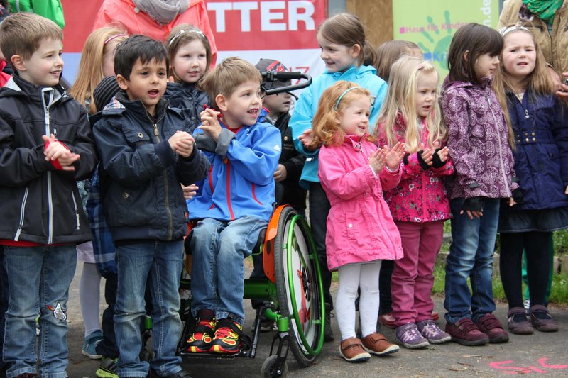 Alle waren gekommen. Oberbürgermeister Dr. Ivo Holzinger, die Kita-Referentin des Stadtrates, Maria Schmölzing, Martina Bescherer vom Elternbeirat, die Architekten Simone Uhlmann und Wolfgang Krischke, Ulrich Dick von der ausführenden Baufirma Kutter GmbH & Co. KG, weitere Ehrengäste und natürlich die Kinder.