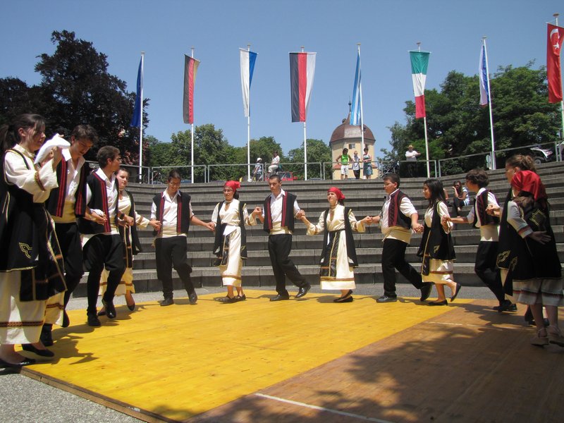 Ganz begeistert vom Memminger Fest der Kulturen waren die Mitglieder des Vereins „Serreon“ aus München. Die Gruppe - alle in landestypischen Trachten – brachte griechische Tänze auf die Bühne und zogen sofort die Zuschauer in ihren Bann. Was wäre ein Fest der Kulturen ohne türkische Tanzbeiträge: Mädchen einer Kolbasti-Tanzgruppe und Tänze aus der Schwarzmeerregion waren eine Bereicherung des Programms.