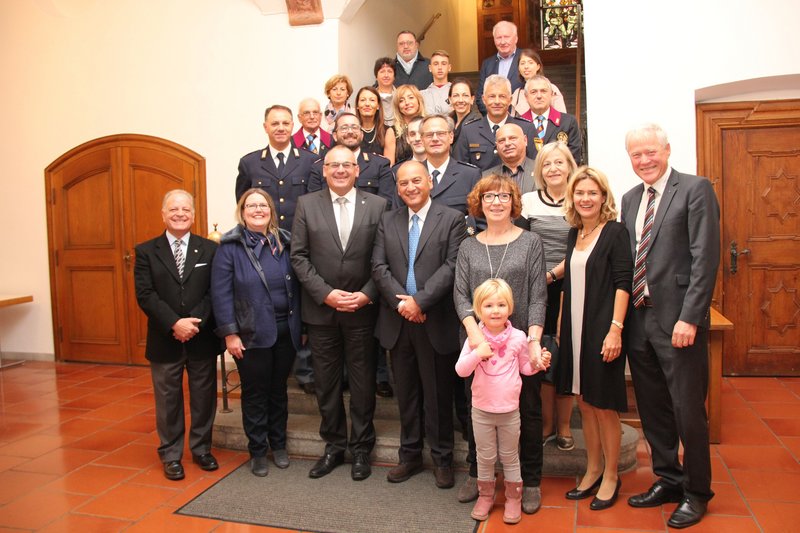 Oberbürgermeister Manfred Schilder hieß die Gäste, auch im Namen von 2. Bürgermeisterin Margareta Böckh, sehr herzlich im Rathaus willkommen. Im Rahmen des Empfangs betonte der Rathauschef, dass „Freundschaft erst dann besteht, wenn es persönliche Begegnungen zwischen den Menschen gibt; das Aufhängen von Partnerschaftsurkunden begründet noch lange keine Freundschaft zwischen den Menschen“. Das Stadtoberhaupt freute sich deshalb besonders, daß die Teilnahme der italienischen Freunde am Polizeiball schon zu einer schönen Tradition geworden sei. Hier sehe man, dass im Laufe der vielen Jahre echte Freundschaften entstanden sind.