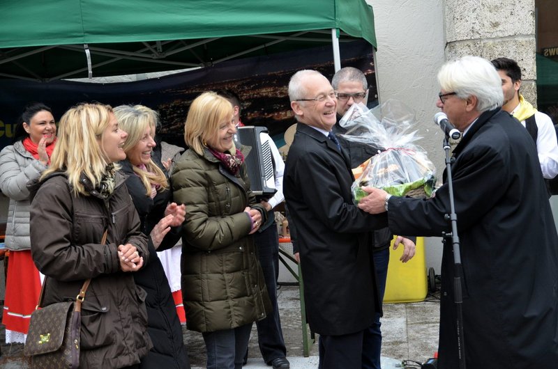 Musik und Tanz der Gruppe Carmine Macaluso tat ein Übriges und machte mit ihren typischen Rhythmen den Besuchern warm und so stand der Aussage von Oberbürgermeister Dr. Ivo Holzinger bei der Begrüßung der überschaubaren Gruppe an Gästen und Besuchern: »Wir feiern bei jedem Wetter« auch nichts mehr dagegen um die Veranstaltung ausgiebig zu genießen.